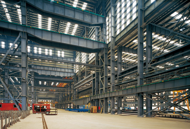 該工程為重型工業(yè)廠房,檐高30米,設(shè)有大噸位行車,最大噸位80噸,以格構(gòu)柱、十字柱為主。