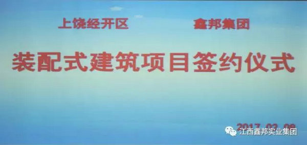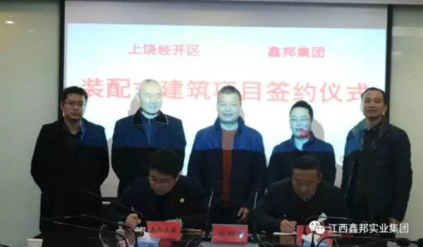 2017年02月08日鑫邦集團與上饒經(jīng)濟技術(shù)開發(fā)區(qū)管委會在江西省上饒鳳凰西大道登封商務(wù)大廈成功簽約,投資建設(shè)裝配式建筑生產(chǎn)基地,涵蓋裝配式鋼結(jié)構(gòu)建筑和裝配式混凝土建筑。