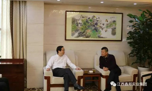 鑫邦集團(tuán)董事長(zhǎng)陳道友向紅十字會(huì)總會(huì)王汝鵬副會(huì)長(zhǎng)介紹集團(tuán)發(fā)展歷程