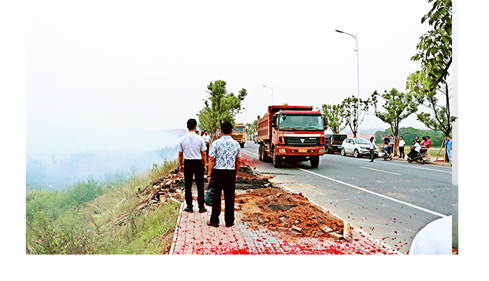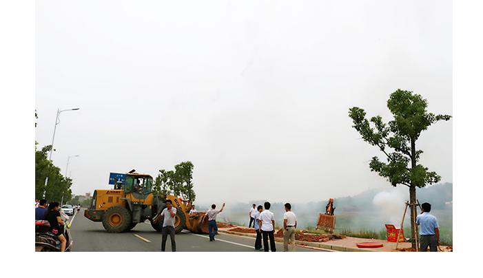 開工儀式結(jié)束后,施工工地上鞭炮齊鳴,煙花飛舞,煙霧繚繞,幾臺(tái)大型挖掘機(jī)械在煙霧中,隆隆的馬達(dá)聲,震耳欲聾,場(chǎng)面熱烈而又震撼。